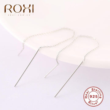 ROXI 925 Sterling Silver Earrings for Women Long Tassel Earrings Ear Line Pendientes Geometry Stick Drop Dangle Earrings Jewelry