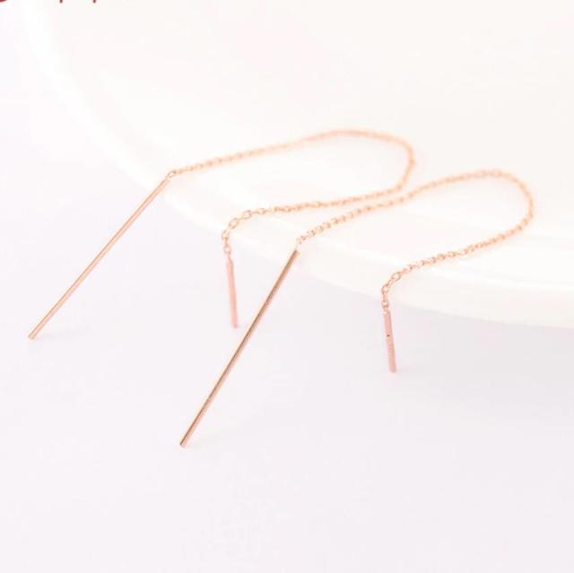 earings fashion jewelry: Geometry Stick Bar Silver ear chain