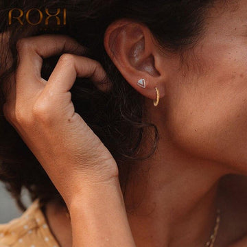 ROXI 925 Sterling Silver Earrings for Women Personality Triangle Stud Earrings Korean Fashion Jewelry Geometric Earing Girl Gift