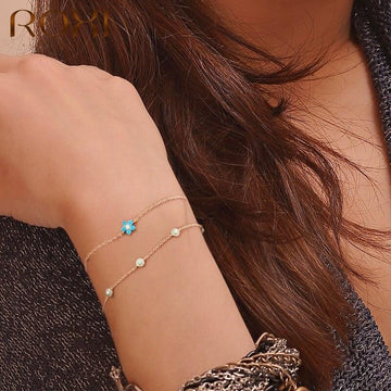 ROXI 925 Sterling Silver Flower Butterfly Bracelet for Women Golden Bracelet Jewelry Charm Chain Bracelet Valentine's Day Gift