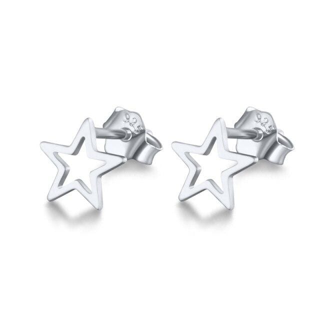 Real 925 Sterling Silver Earrings: Hollow Out Star Small Stud Earrings