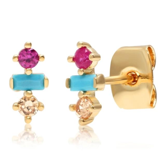 ROXI 925 Sterling Silver Huggie Earrings for Women Geometric Colourful Zircon Piercing Earring Earings Silver Jewelry Pendientes