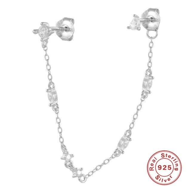 ROXI 925 Sterling Silver Personality Punk Earrings For Women Chain Tassel Diamond Puncture Stud Earrings Fine Jewelry Pendientes