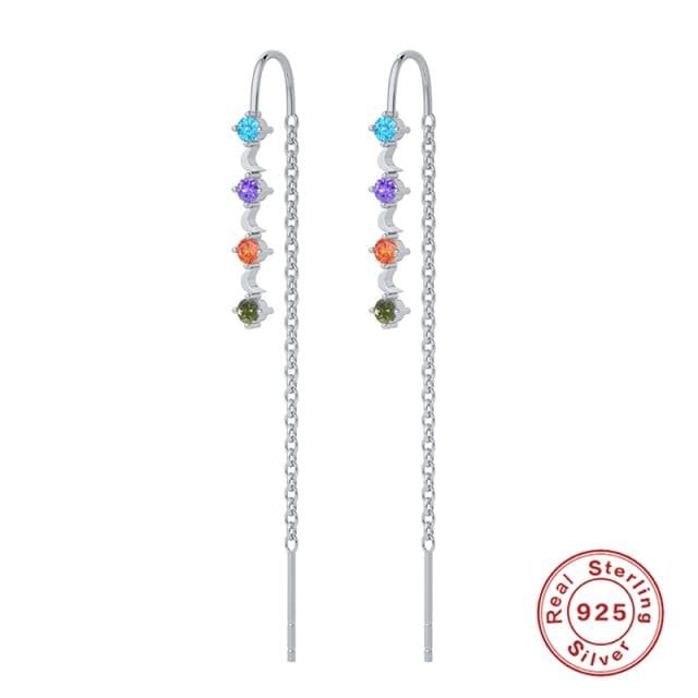 ROXI 925 Sterling Silver Simple Long Chain Earrings For Women Charm Tassel Piercing Earrings 2021 Party Wedding Jewelry Ear Cuff