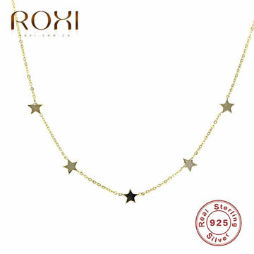 ROXI 925 Sterling Silver Star Charms Chokers Necklaces for Women Choker Collares Fashion Jewelry Boho Tiny Star Pendant Necklace
