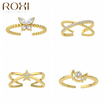 ROXI 925 Sterling Silver Sweet Double Layer Star Moon Opening Ring For Women Finger Ring Engagement Wedding Jewelry Wholesale
