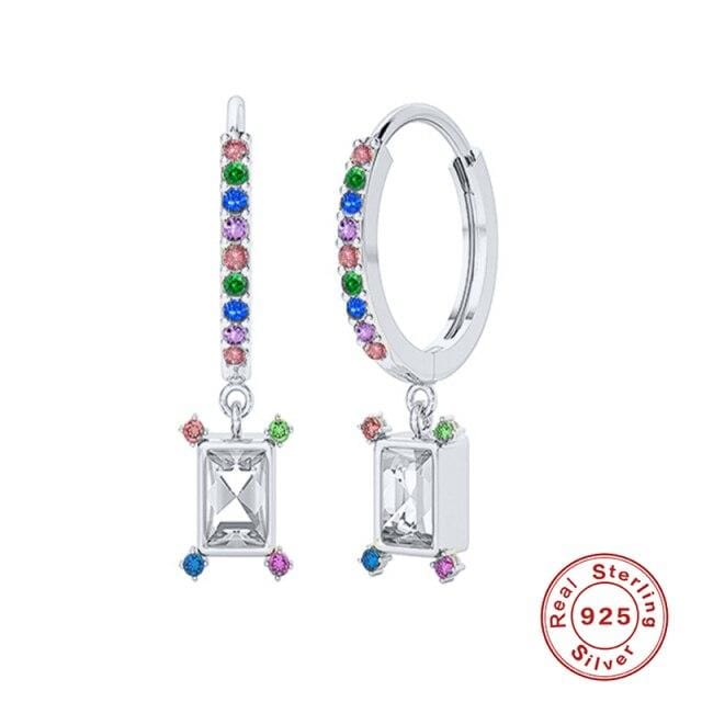 ROXI 925 Sterling Silver Women'S Earrings Colorful Zircon Huggie Ear Piercing Pendant Hoop Earrings Jewelry Pendientes Plata 925