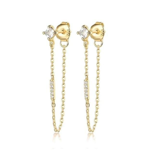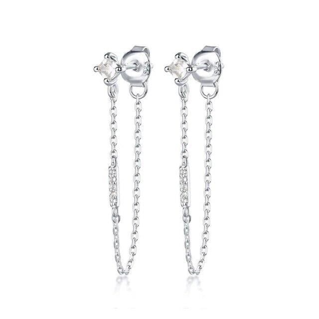 ROXI Black White Zircon Crystals Drop Link Chian Stud Earrings for Women Unusual Earrings Piercing 925 Sterling Silver Jewelry