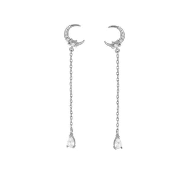 ROXI Bohemia Moon Stud Earrings for Women Girls Link Chain Teardrop Piercing Earrings Silver 925 Jewelry Wedding Earring Gift