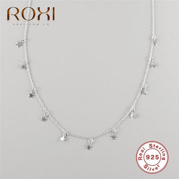 ROXI Bohemian Tiny Star Women Choker Necklace Female Silver Color Short Chain Necklace Real 925 Sterling Silver Necklace Jewelry