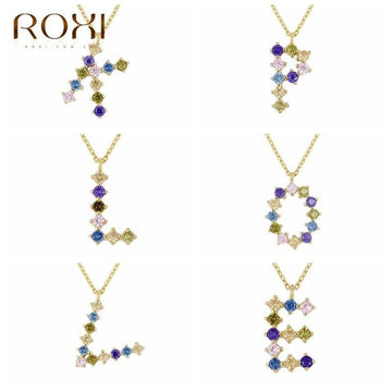 ROXI Colorful 26 English Alphabet Pendant Necklaces for Women Men Birthday Jewelry Letters 925 Sterling Silver Clavicle Necklace