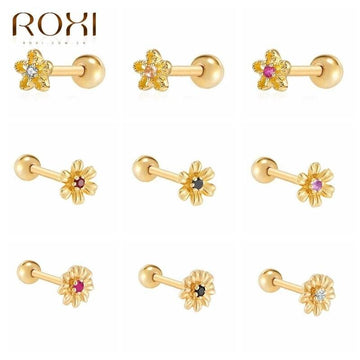 ROXI Colorful Crystals Flowers Stud Earrings for Women Girls Gift Lovely Wedding Earring Piercing 925 Sterling Silver Pendientes