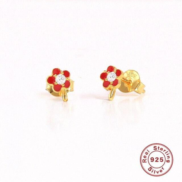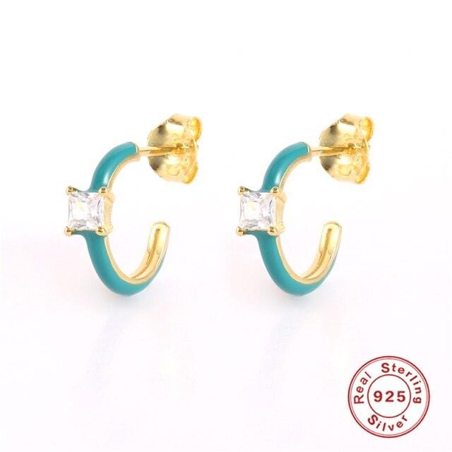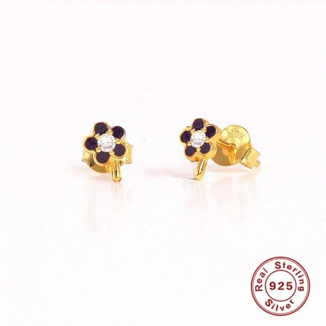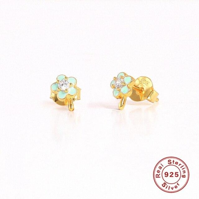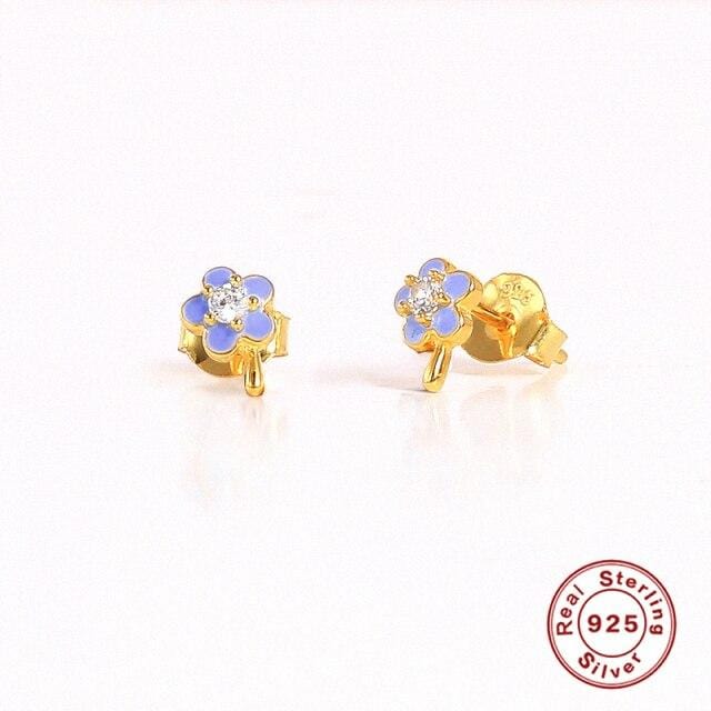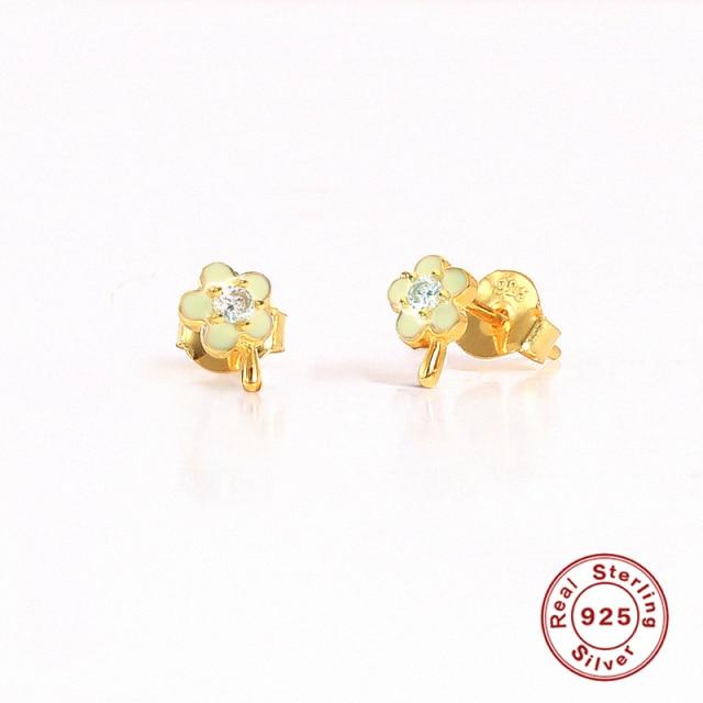 925 Sterling Silver Earrings: Gold Color Stud Earrings