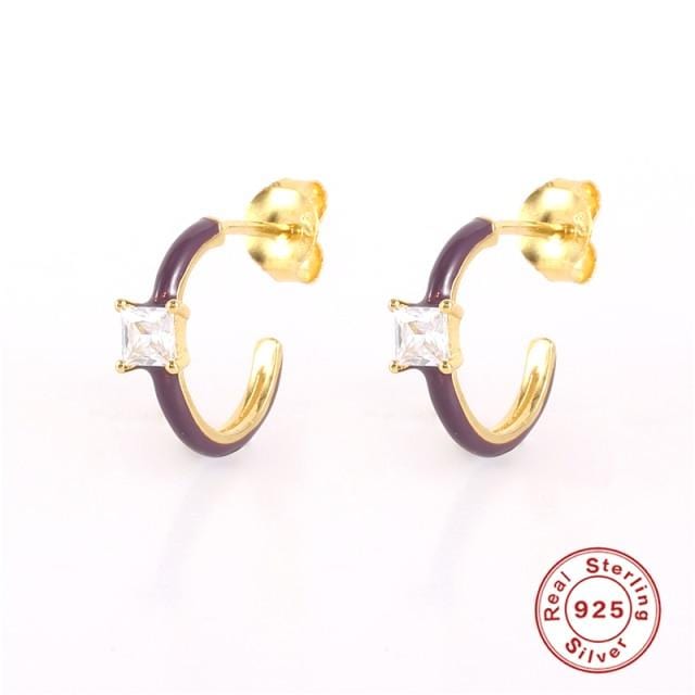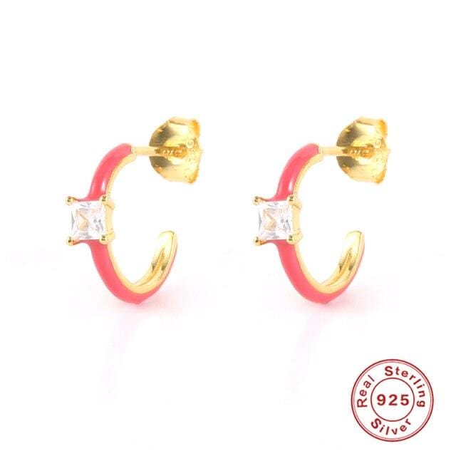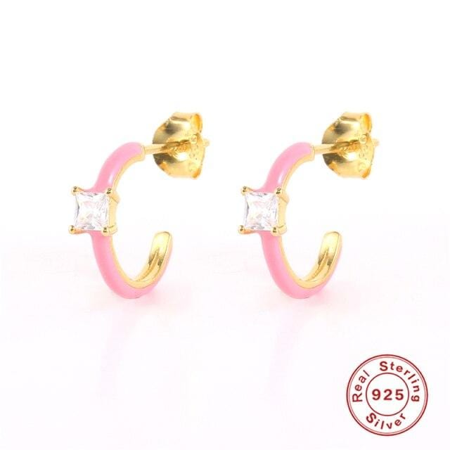 ROXI Colorful Enamel Stud Earrings for Women Neon Round Circle Jewelry Earrings 925 Sterling Silver Huggie Earrings Piercing