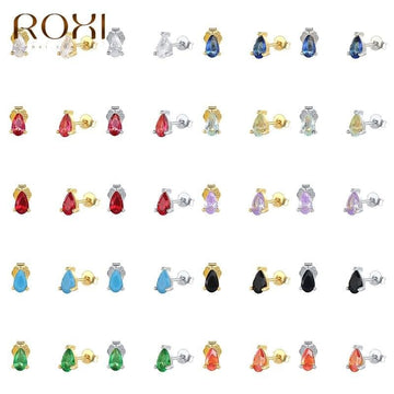 ROXI Colorful Small Teardrop Crystals Stud Earrings for Women Jewelry Water Droplets Piercings Earring Pendientes Plata 925 Gift