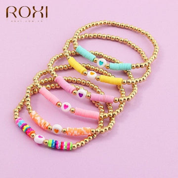 ROXI Copper Polymer Clay Discs Beads Chains Bracelets for Women Girls Colors Cute Heart Handmade Adjustable Bracelet Jewelry