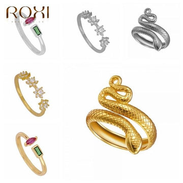 ROXI Copper Snake Open Rings for Women Girl Cool Party Jewelry Anillos Crystals Engagement Ring Irregular Adjustable Finger Ring