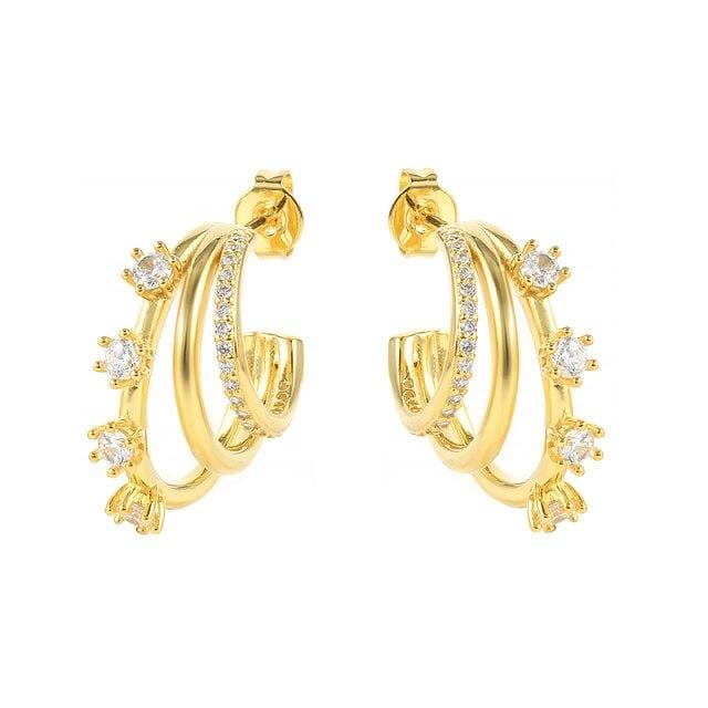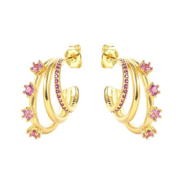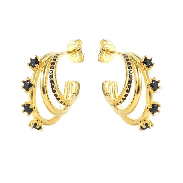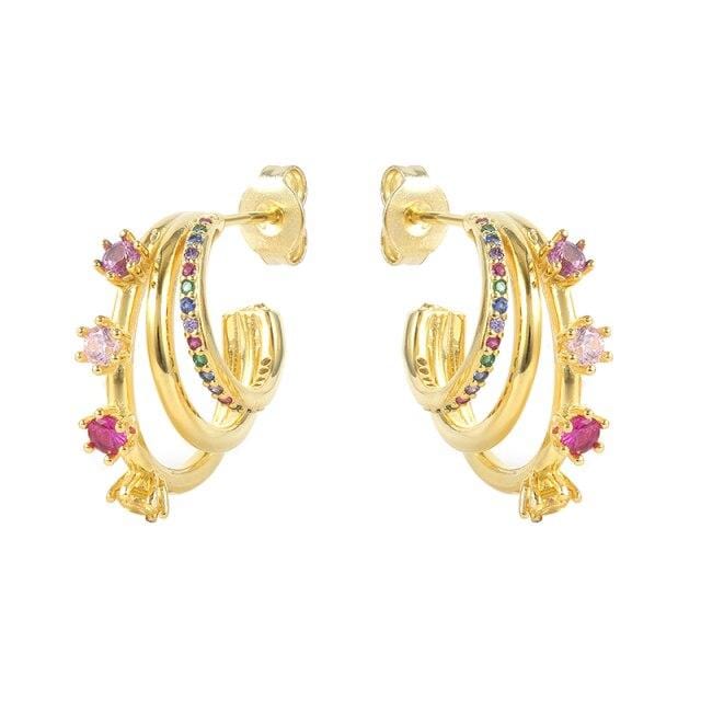 ROXI Copper Three Line Idol Hoop Color Drill Earrings For Women 2021 Trendy Punk Piercing Stud Earrings Fine Jewelry Gift Gotico
