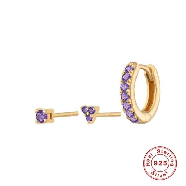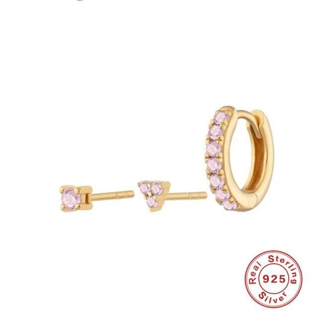 925 Sterling Silver Earrings: Gold/Silver Color Stud Earrings