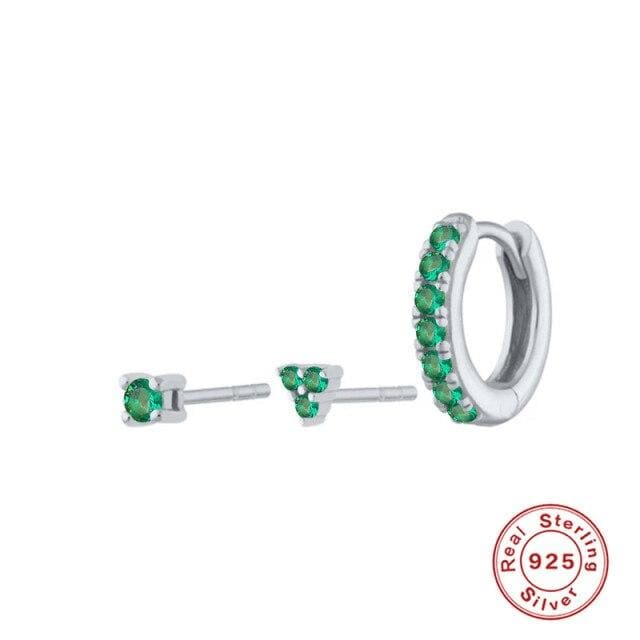 ROXI Creative 3pcs Round Triangle Turquoise Stone Stud Earrings for Women Earring Piercing 925 Sterling Silver Jewelry Orecchini