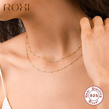 ROXI Double Beads Chains Clavicle Necklaces for Women Girls Choker Wedding Jewelry 925 Sterling Silver Gold Necklaces Collares
