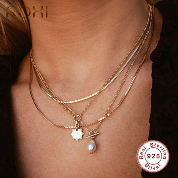 ROXI Double Chains Minimalism Clavicle Necklaces for Women Gold Color Necklace Jewelry Chain Sterling Silver 925 Choker Collares