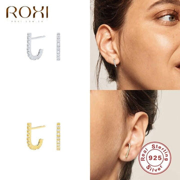 ROXI Elegant J Shape Zircon Crystals Stud Earrings for Women Girls Piercing Earrings Unusual Silver 925 Jewelry Earrings Brincos