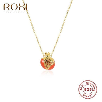 ROXI Enamel Red Pomegranate Pendant Necklace for Women Girls Wedding Birthday Gift Silver 925 Jewelry Gold Chain Necklace Choker