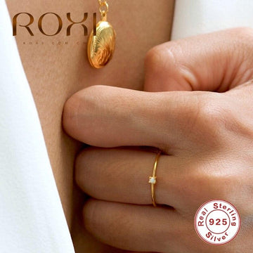 ROXI Fashion 925 Sterling Silver Opal Inlaid Stone Wedding Rings for Women Simple Pierscionki Engagement Ring Silver 925 Jewelry