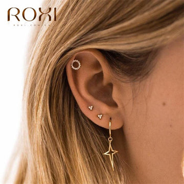 ROXI Fashion Minimalist 925 Sterling Silver Earrings for Women Cartilage Helix Three Ball Small Stud Earrings Piercing Jewelry