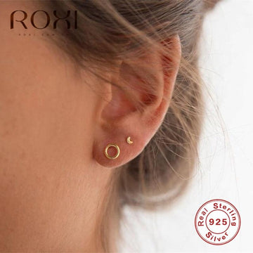 ROXI Fashion Simple Geometric Small Circle Earrings for Women Minimalist Jewelry Korean Genuine 925 Sterling Silver Earring Gift