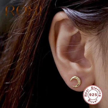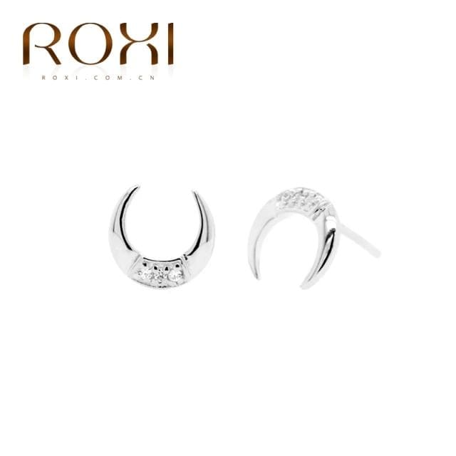 ROXI Geometric Moon Crescent 925 Sterling Silver Earrings for Women Wedding Piercing Stud Earrings Kolczyki Cartilage Earings