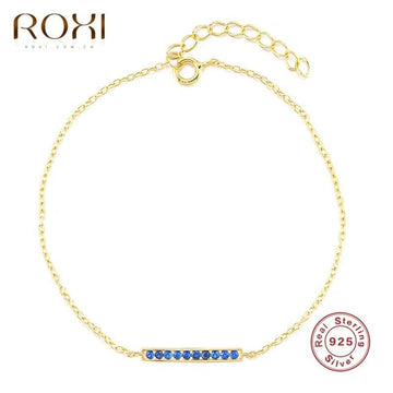 ROXI Geometric Strip Colorful Zircon Chain Bracelets for Women Jewelry Gold Bracelets 925 Sterling Silver Glossy Strip Bracelet