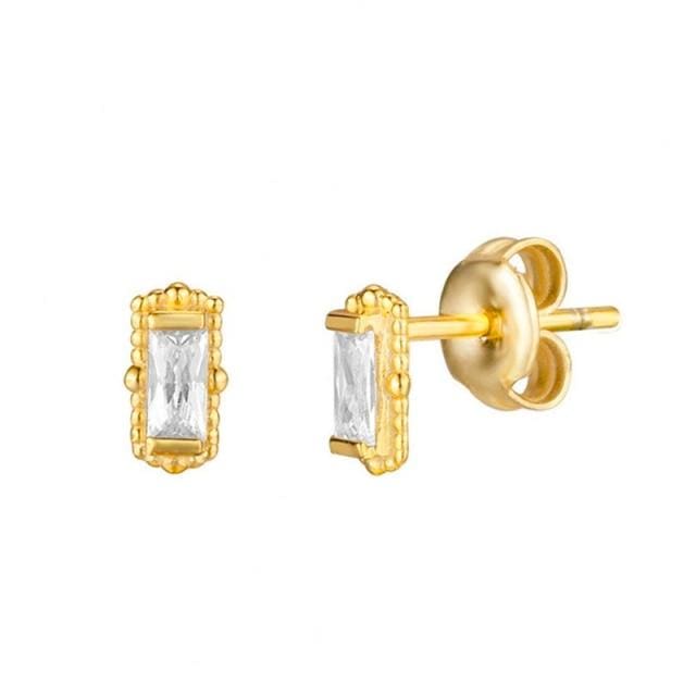 925 Sterling Silver Earrings: Gold/Silver Color Round Stud Earrings