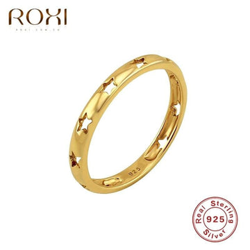 ROXI Hollow Stars Gold Rings for Women Girls Bague Fashion Jewelry Circle Finger Ring 925 Sterling Silver Anillos Woman Rings