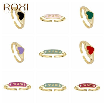 ROXI Hot Enamel Heart Gold/Silver Rings for Women Girl Jewelry 925 Sterling Silver MAMA Finger Rings Open Ring Mother's Day Gift