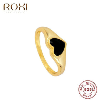 ROXI Ins Black Crystals Heart Gold Rings for Women Wedding Finger Rings 925 Sterling Silver Jewelry Anillos Ring Engagement Ring