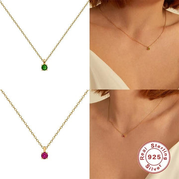 ROXI Ins Blue Yellow Green Rose Red Gemstones Pendant Necklaces for Women Necklace Jewelry Chains Sterling Silver 925 Collares