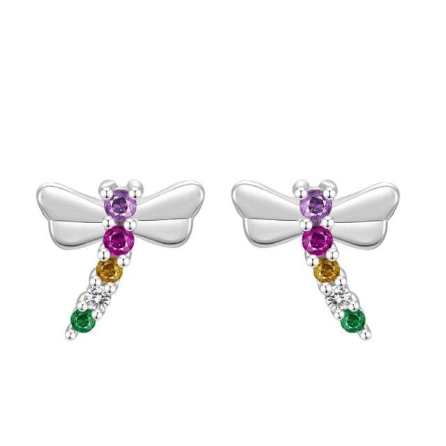 ROXI Ins Colorful Zircon Crystals Dragonfly Stud Earrings for Women Three Stone Piercing Earring 925 Sterling Silver Pendientes