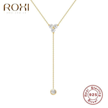 ROXI Ins Crystals Clover Pendant Round Necklaces for Women Jewelry 925 Sterling Silver Clavicle Necklace Collares Chains Choker
