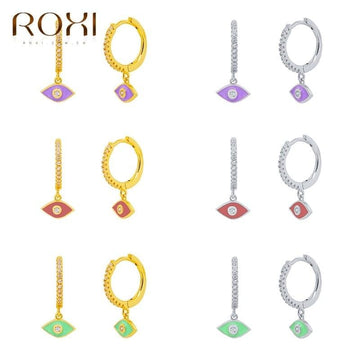 ROXI Ins Crystals Huggie Earrings for Women Dripping oil Eyes Jewelry Hoop Earring Cartilage 925 Sterling Silver Pendientes