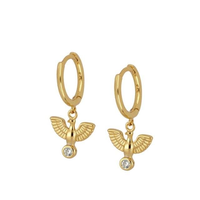 ROXI INS Drop Peace Dove White Zircon Crystals Round Hoop Earrings for Women Girls Wedding Earrings Silver 925 Jewelry Brincos
