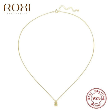 ROXI Ins Geometry White Green Crystals Clavicle Necklaces for Women Birthday Jewelry 925 Sterling Silver Gold Necklace Choker