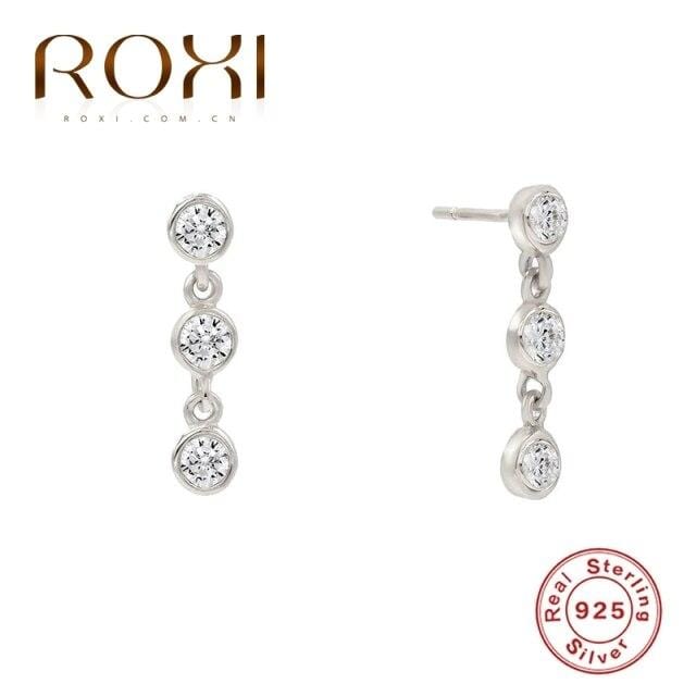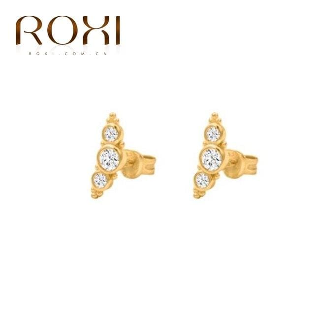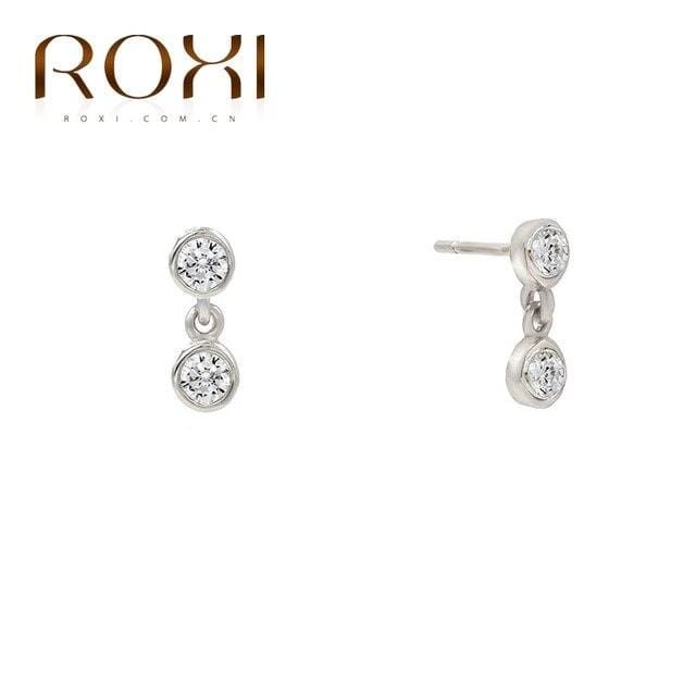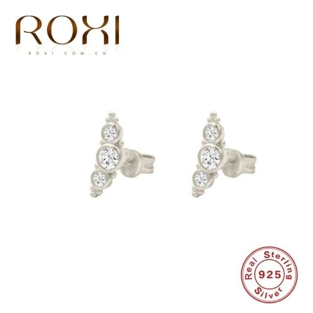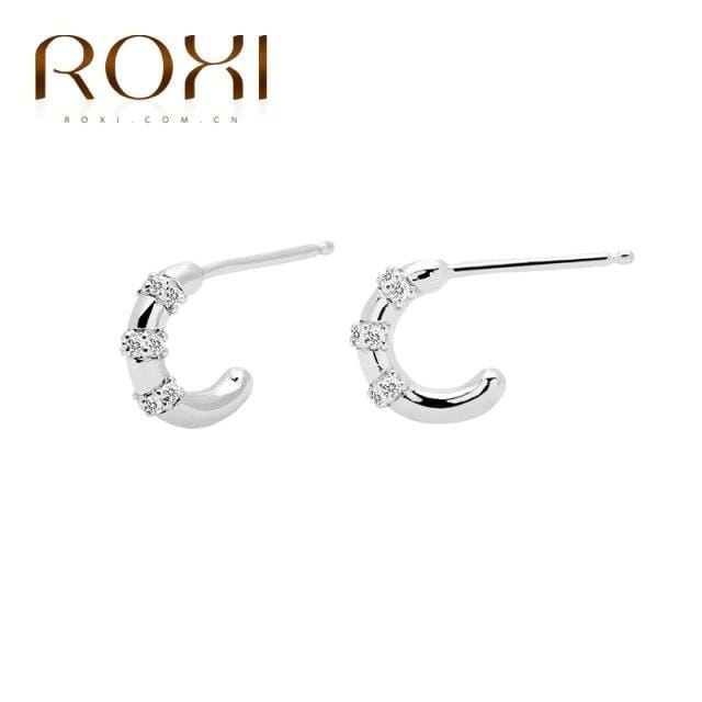ROXI INS Luxury Piercing Double Three Stone C-shape Semicircle Stud Earrings for Women Girl 925 Sterling Silver Cartilage Earing
