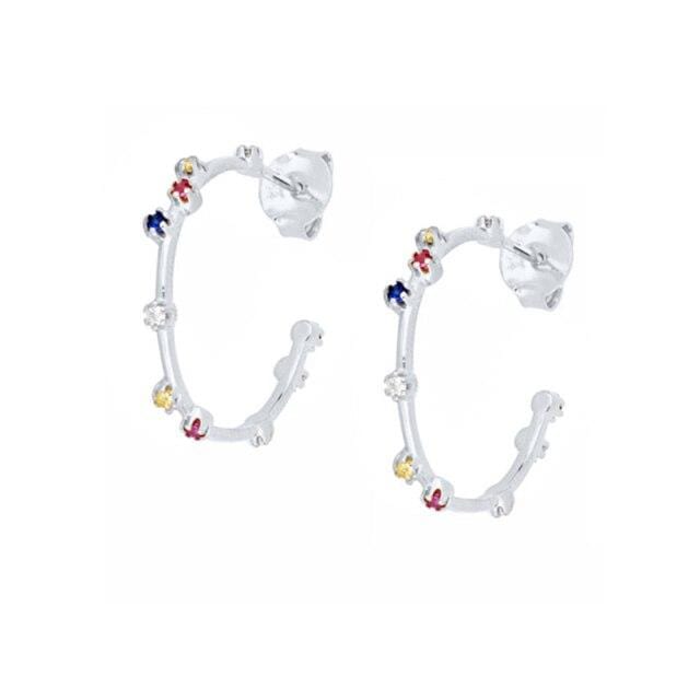 ROXI Irregular Mini Rainbow Crystals CZ C Shape Stud Earrings for Women Jewelry Earrings Piercing 925 Sterling Silver Pendientes
