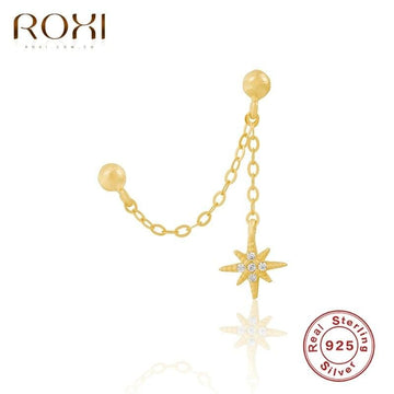 ROXI Link Chain Crystals Star Stud Earrings For Women Double Ear Studs Jewelry Piercing Earrings 925 Sterling Silver Pendientes