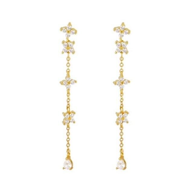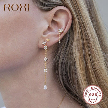 ROXI Long Crystals Small Flowers Stud Earrings For Women Girls Teardrop Jewelry Piercing Earring 925 Sterling Silver Pendientes