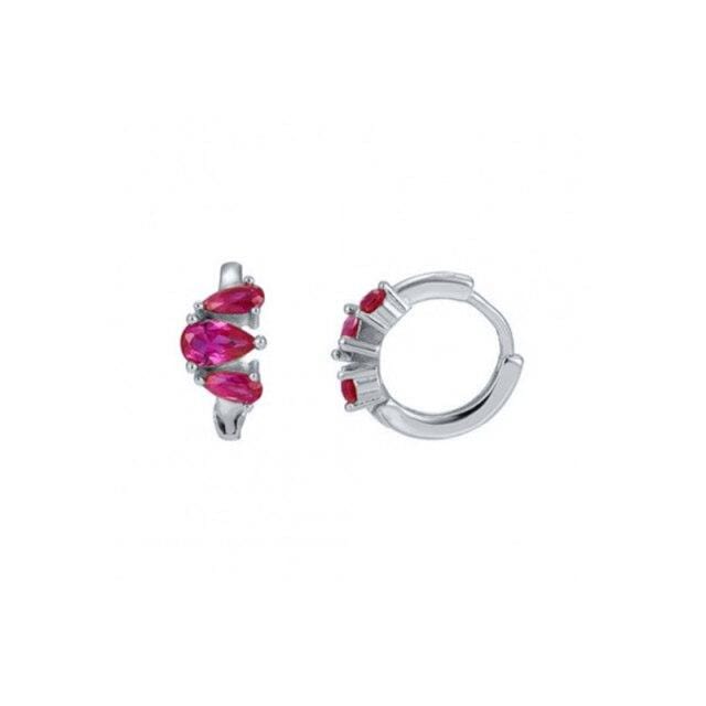 ROXI Lovely Crown Flower Purple Rose Red Zircon Crystal Hoop Earrings for Women Earrings Cartilage 925 Sterling Silver Jewelry