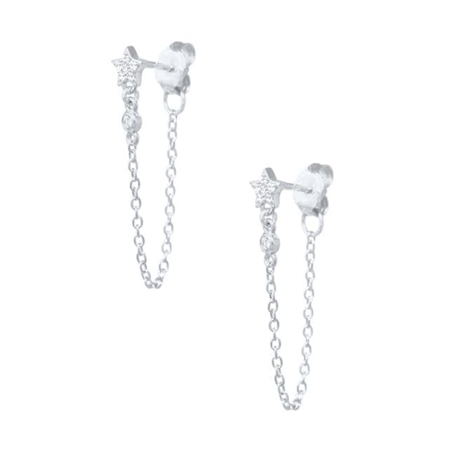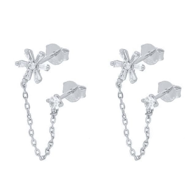 ROXI Lovely White Zircon Crystals Flowers Stars Stud Earrings for Women Girls Link Chain Earrings 925 Sterling Silver Pendientes