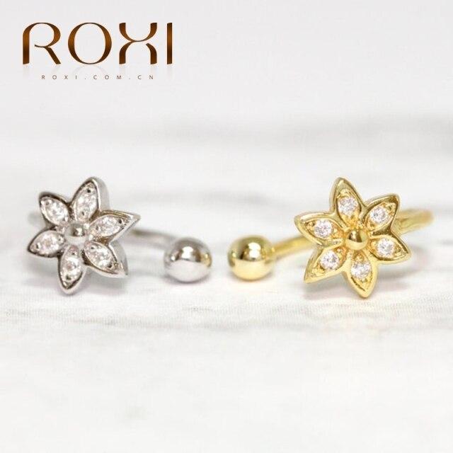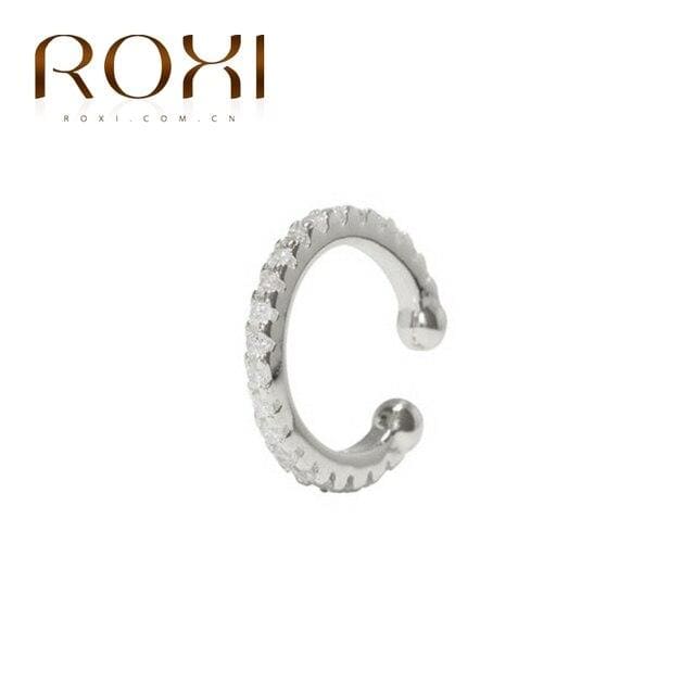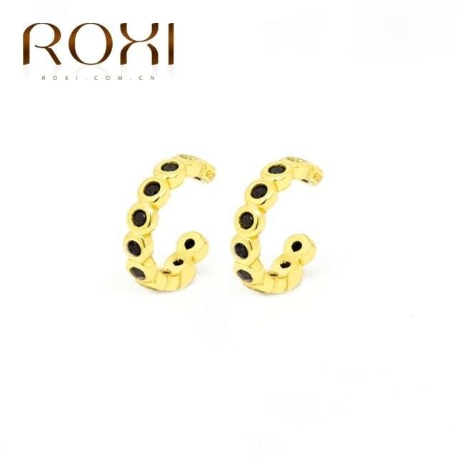 ROXI Luxury Round Black Zircon Petal Snowflake Clip Earrings for Women Round Circle Ear Cuff NO Piercings Silver 925 Jewelry